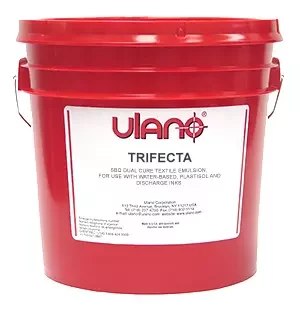 TRIFECTA es una emulsión directa SBQ dual-cure, lista para usar, reconocida por su exposición extremadamente rápida, alta durabilidad y su característico color violeta. Es ideal para la impresión de ropa deportiva, funcionando de manera sobresaliente con tintas base agua, tintas de descarga y tintas plastisol, incluidas formulaciones libres de ftalatos utilizadas en la serigrafía profesional en Colombia.